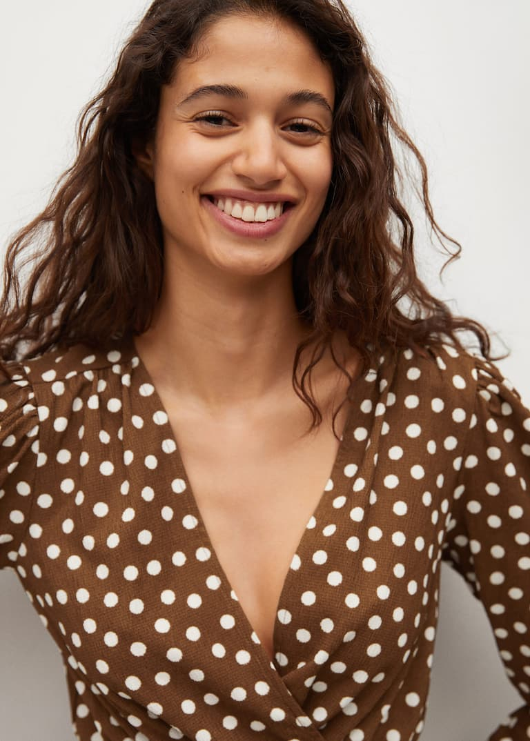 Rochie cu textura și volane, model în cruce,  model scurt, decolteu în V, mâneci lungi,  volane.